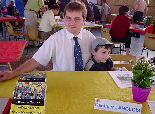 - Gauthier Langlois, en séance de signature au salon du livre de Mirepoix (le 7 juillet 2002) -